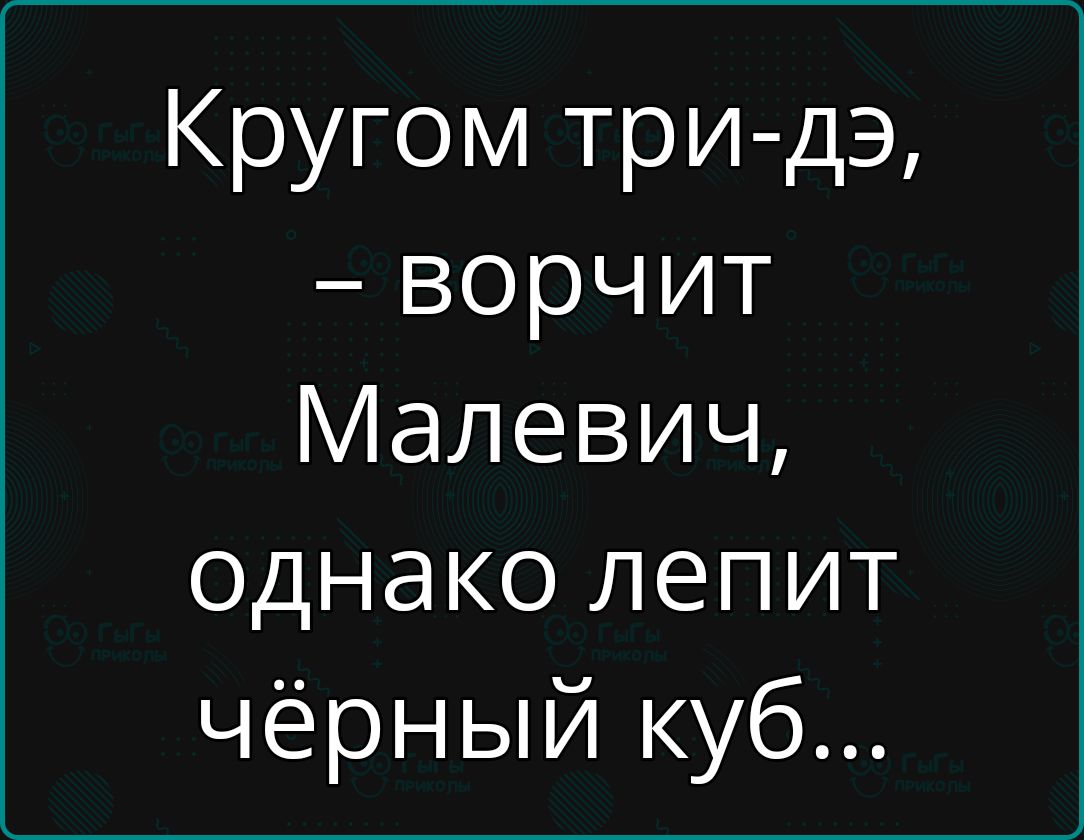 Кругом три-дэ, – ворчит Малевич, однако лепит чёрный куб...