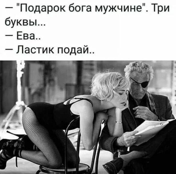 "Подарок бога мужчине". Три буквы... - Ева.. - Ластик подай..