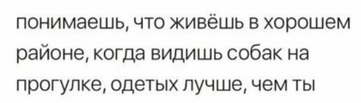 понимаешь что живёшь в хорошем районе когда видишь собак на прогулке одетых лучше чем ты