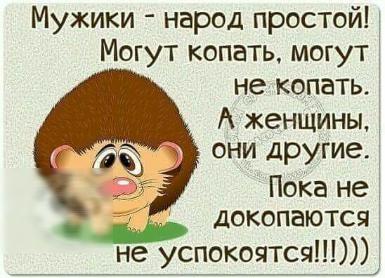 Мужики народ простой Могут копать могут негкопать АЖенЩины они другие Поіа не докопаются не успокоятся