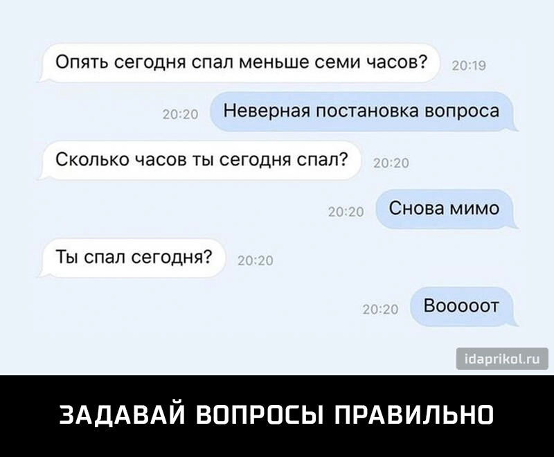 Опять сегодня спап меньше семи часов Невернаяпостановкавопроса Сколько часов ты сегодня спал Сновамимо ТЬспап сегодня Вооооот ЗАДАВАЙ ВОПРОСЫ ПРАВИЛЬНО