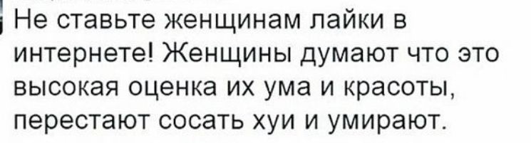 Не ставьте женщинам лайки в интернете Женщины думают что это высокая оценка их ума и красоты перестают сосать хуи и умирают