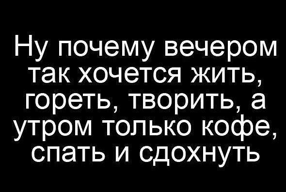 Ну почему вечером так хочется жить гореть творить а утром только кофе спать и сдохнуть