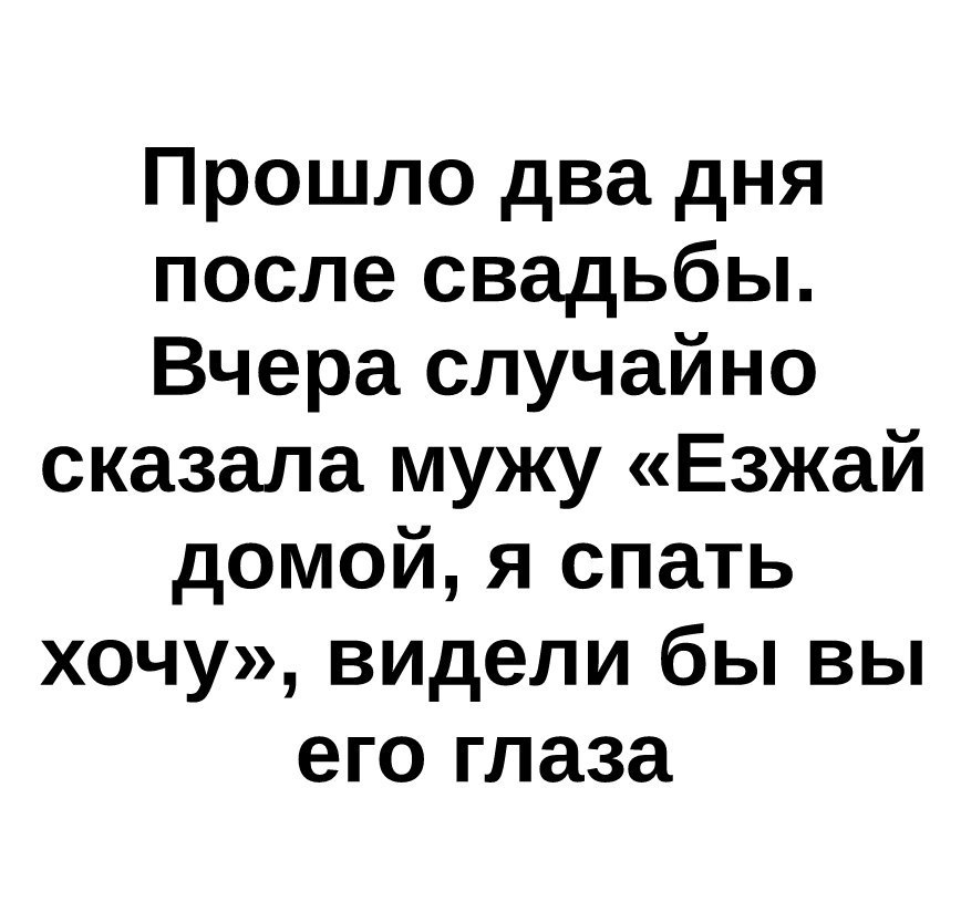 Прошло два дня после свадьбы Вчера случайно сказала мужу Езжай домой я спать хочу видели бы вы его глаза