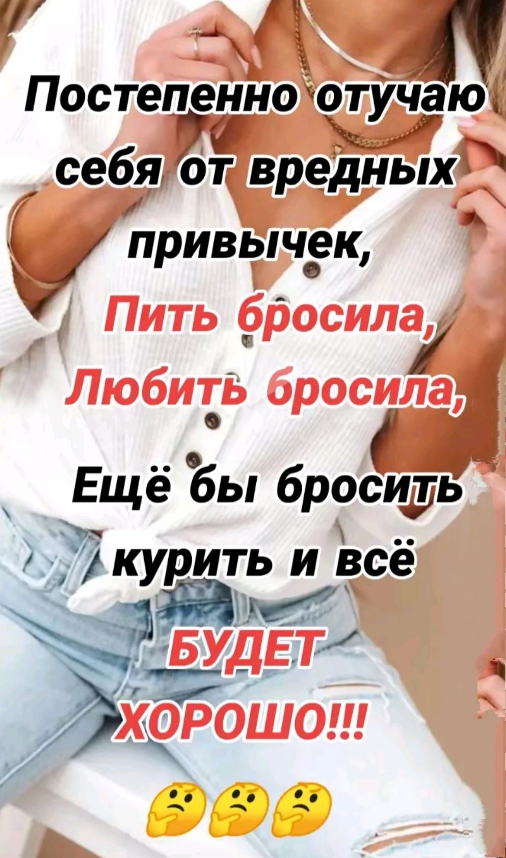 Постепенно отучаю себя от вредных привычек, Пить бросила, Любить бросила, Ещё бы бросить курить и всё БУДЕТ ХОРОШО!!!