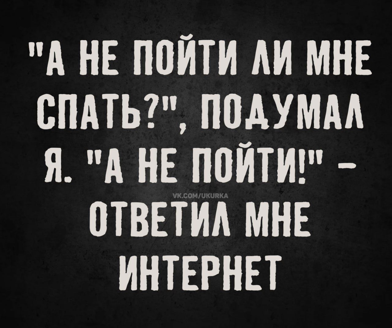 "А не пойти ли мне спать?", подумал я. "А не пойти!" - ответила мне интернет