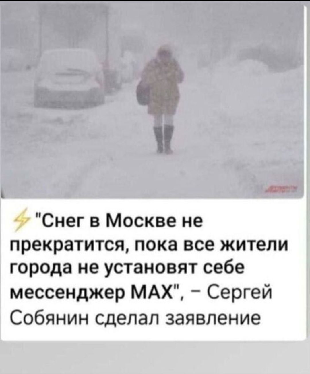 "Снег в Москве не прекратится, пока все жители города не установят себе мессенджер MAX", – Сергей Собянин сделал заявление