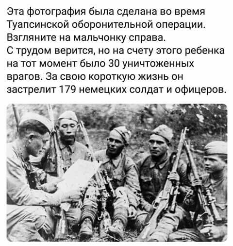 Эта фотография была сделана во время Туапсинской оборонительной операции Взгляните на мапьчонку справа С трудом верится но на счету этого ребенка на тот момент было 30 уничтоженных врагов за свою короткую жизнь он застрепит 179 немецких солдат и офицеров