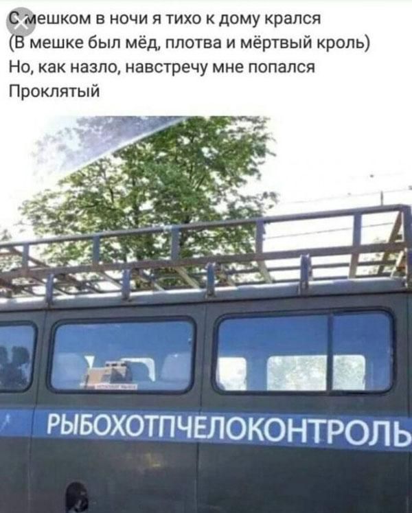 с МЕШКОМ В НОЧИ Я ТИХО К ДОМУ крался Вхмешке был мёд плотва и мёртвый кроль Но как назло навстречу мне попался Проклятый ЁЭ _ рывохотпчелоконтроль