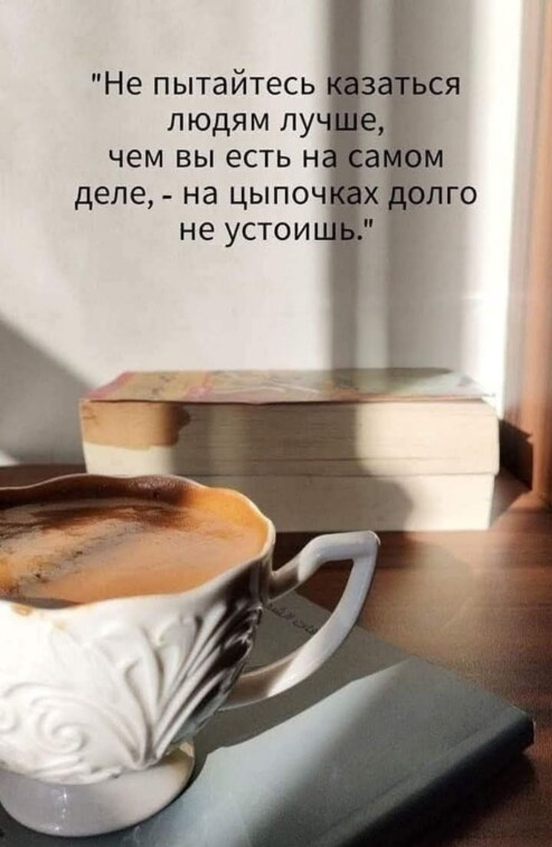 "Не пытайтесь казаться людям лучше, чем вы есть на самом деле, - на цыпочках долго не устоишь."