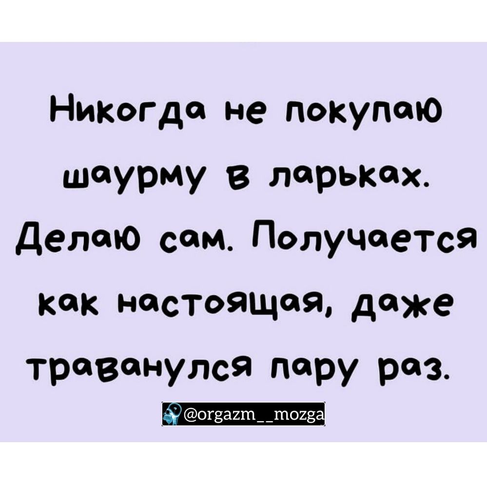 Никогда не покупаю ШУРМУ в ларькех делаю сам Получается как настоящая даже ТрОВФНУЛся пару раз
