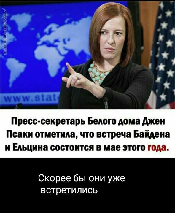 Пресс секретарь Белого дома Ахен Псаки отметила что встреча Байдена и Ельцина состоится в мае этого года Скорее бы они уже встретились