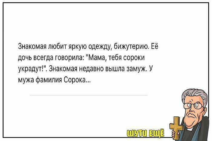 Знакомая любит яркую одежду бижутерию Её дочь всегда говорила Мама тебя сороки украдут Знакомая недавно вышла замуж У мужа фамилия Сорока