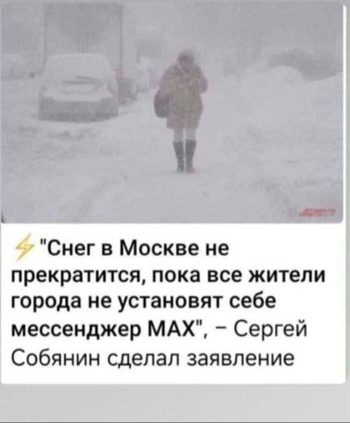 "Снег в Москве не прекратится, пока все жители города не установят себе мессенджер MAX", – Сергей Собянин сделал заявление