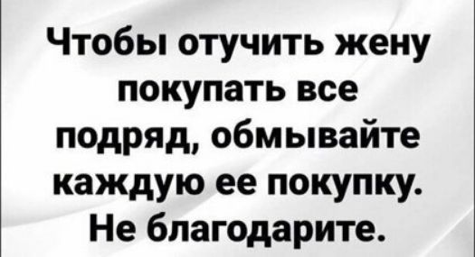 Чтобы отучить жену покупать все подряд обмывайте каждую ее покупку Не благодарите