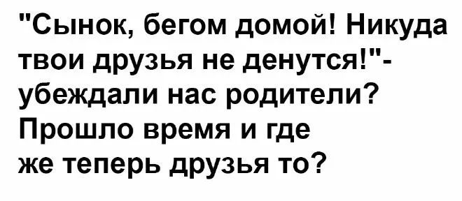 "Сынок, бегом домой! Никуда твои друзья не денутся!"- убеждали нас родители? Прошло время и где же теперь друзья то?