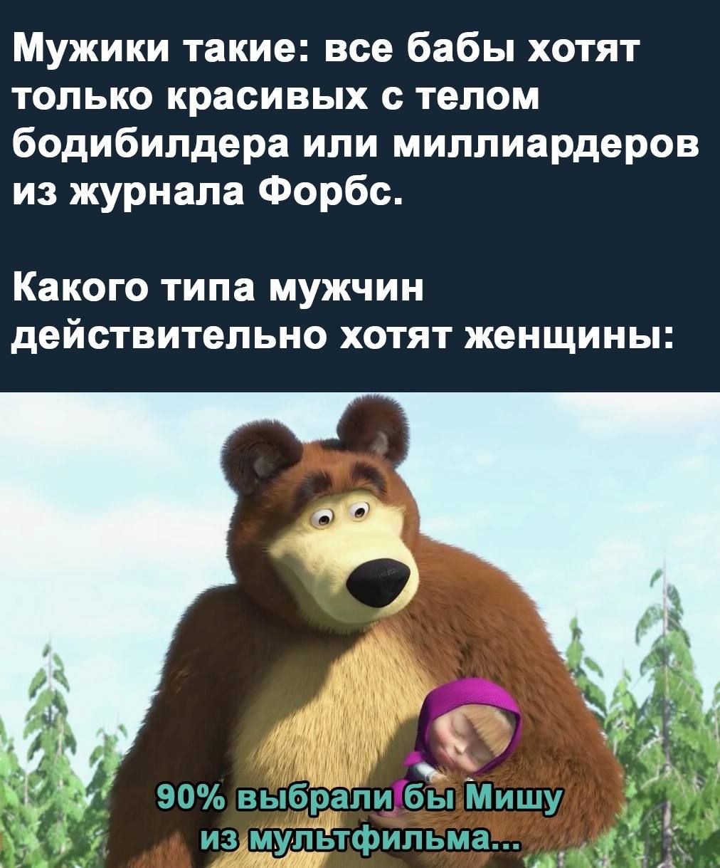 Мужики такие все бабы хотят ТОЛЬКО красивых с телом бодибилдера или миллиардеров из журнала Форбс Какого типа МУЖЧИН действительно ХОТЯТ женщины 5 90 выбрапибы Мишу из М_ь ыфипьма