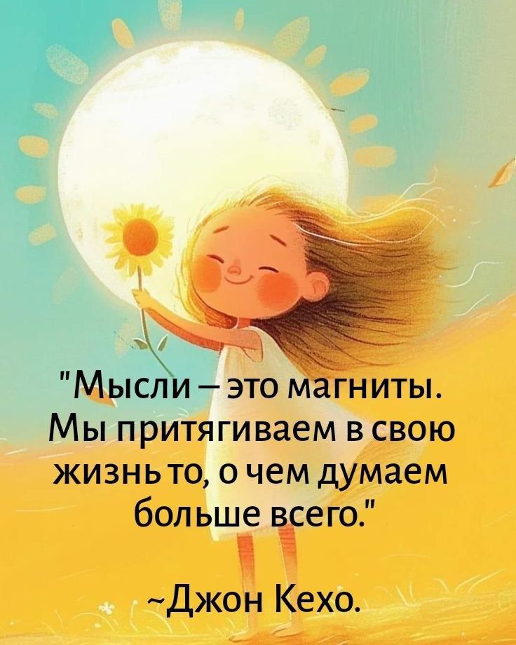 "Мысли — это магниты. Мы притягиваем в свою жизнь то, о чем думаем больше всего." ~Джон Кехо.