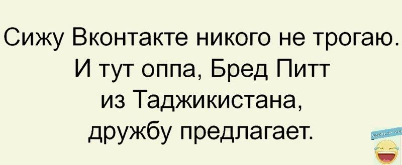 Сижу Вконтакте никого не трогаю И тут оппа Бред Питт из Таджикистана дружбу предлагает