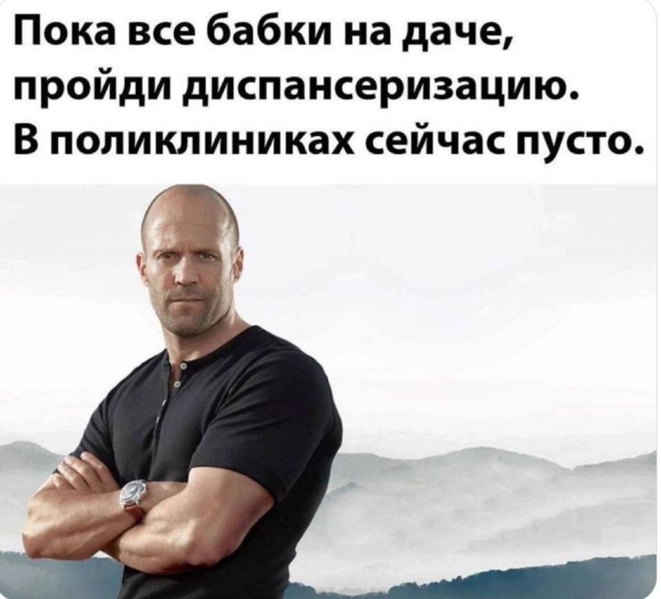 Пока все бабки на даче, пройди диспансеризацию. В поликлиниках сейчас пусто.