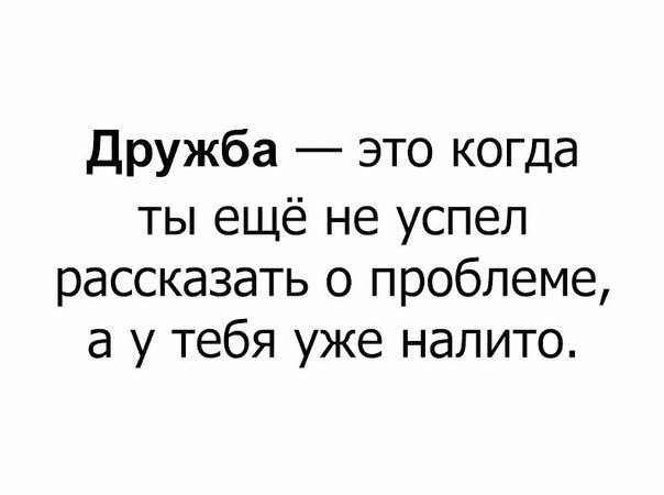дружба это когда ты ещё не успел рассказать о проблеме а у тебя уже налито