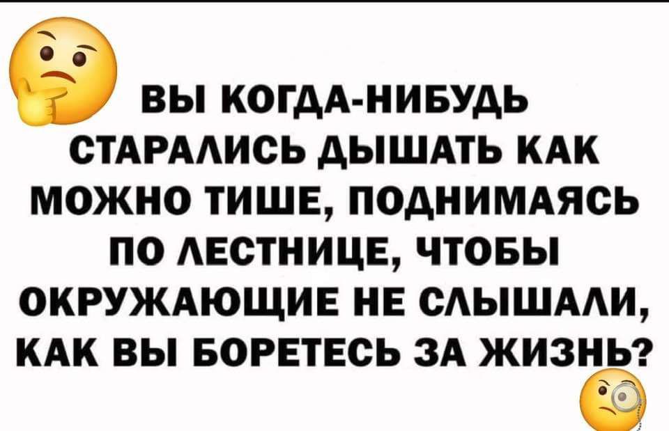 ВЫ КОГДА-НИБУДЬ СТАРАЛИСЬ ДЫШАТЬ КАК МОЖНО ТИШЕ, ПОДНИМАЯСЬ ПО ЛЕСТНИЦЕ, ЧТОБЫ ОКРУЖАЮЩИЕ НЕ СЛЫШАЛИ, КАК ВЫ БОРЕТЕСЬ ЗА ЖИЗНЬ?