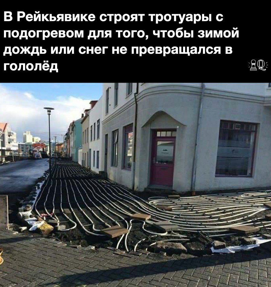 В Рейкьявике строят тротуары с подогревом для того чтобы зимой дождь или снег не превращался в гололёд