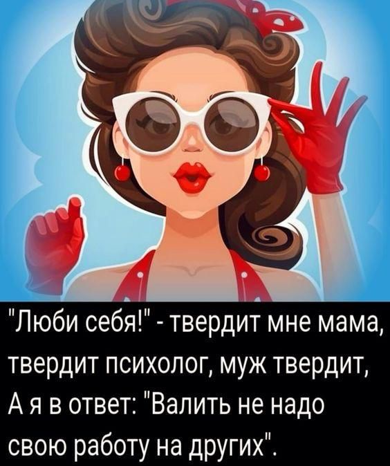 "Люби себя!" - твердет мне мама, твердет психолог, муж твердит, А я в ответ: "Валить не надо свою работу на других."