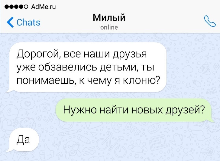 00000 АйМеш СНатз Милый опіппе Дорогой все наши друзья уже обзавелись детьми ты понимаешь к чему я кпоню Нужно найти новых друЗей