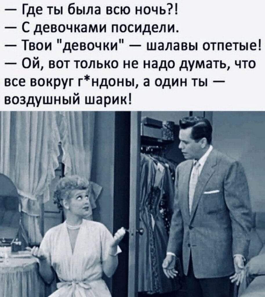 Где ты была всю ночь С девочками посидели Твои девочки шалавы отпетые Ой вот только не надо думать что все вокруг гндоны а один ты воздушный шарик