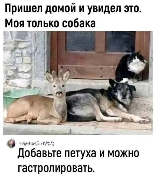 Пришел домой и увидел это. Моя только собака Добавьте петуха и можно гастролировать.