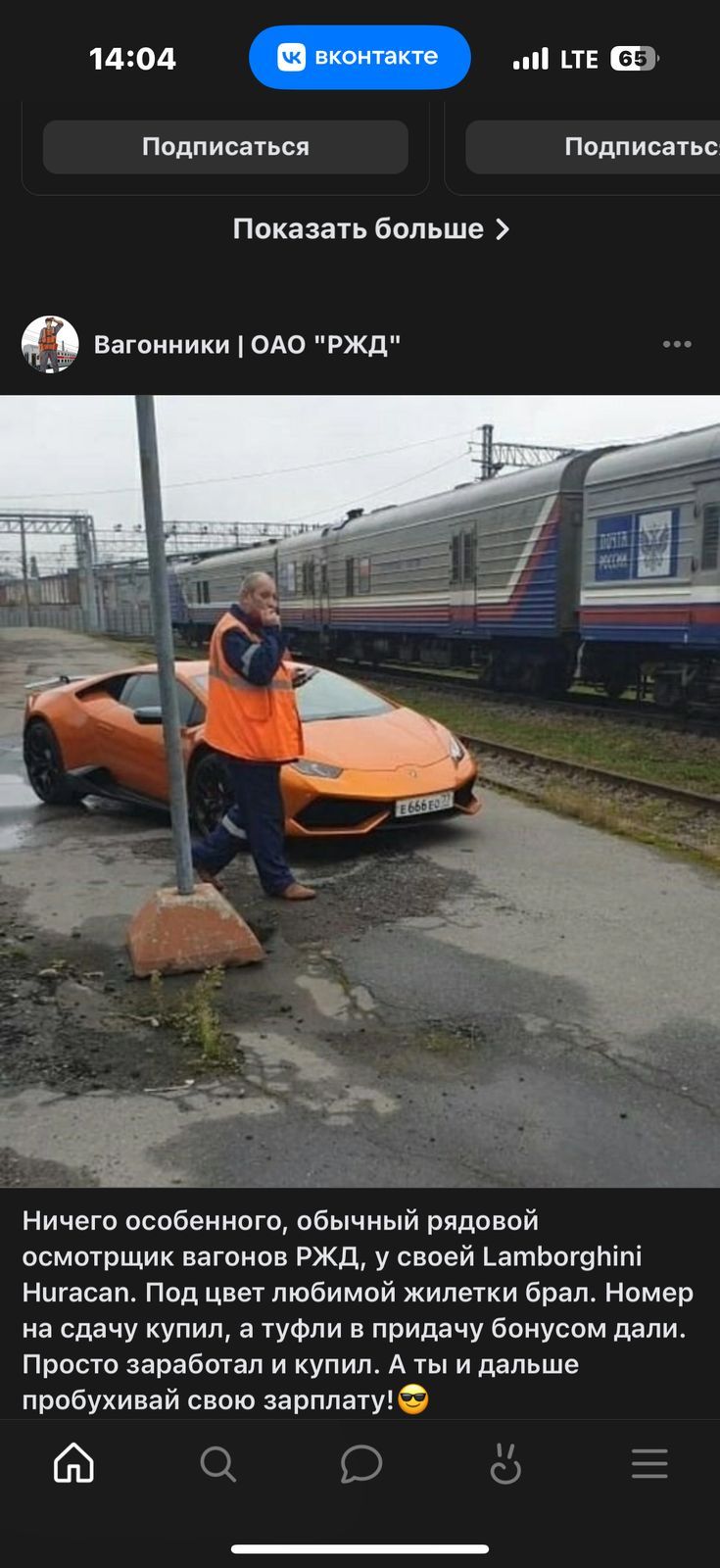 Ничего особенного, обычный рядовой осмотрщик вагонов РЖД, у своей Lamborghini Huracan. Под цвет любимой жилетки брал. Номер на сдачу купил, а трубки в приданию бонусом дали. Просто заработал и купи. А ты и дальше пробухивай свою зарплату!😎