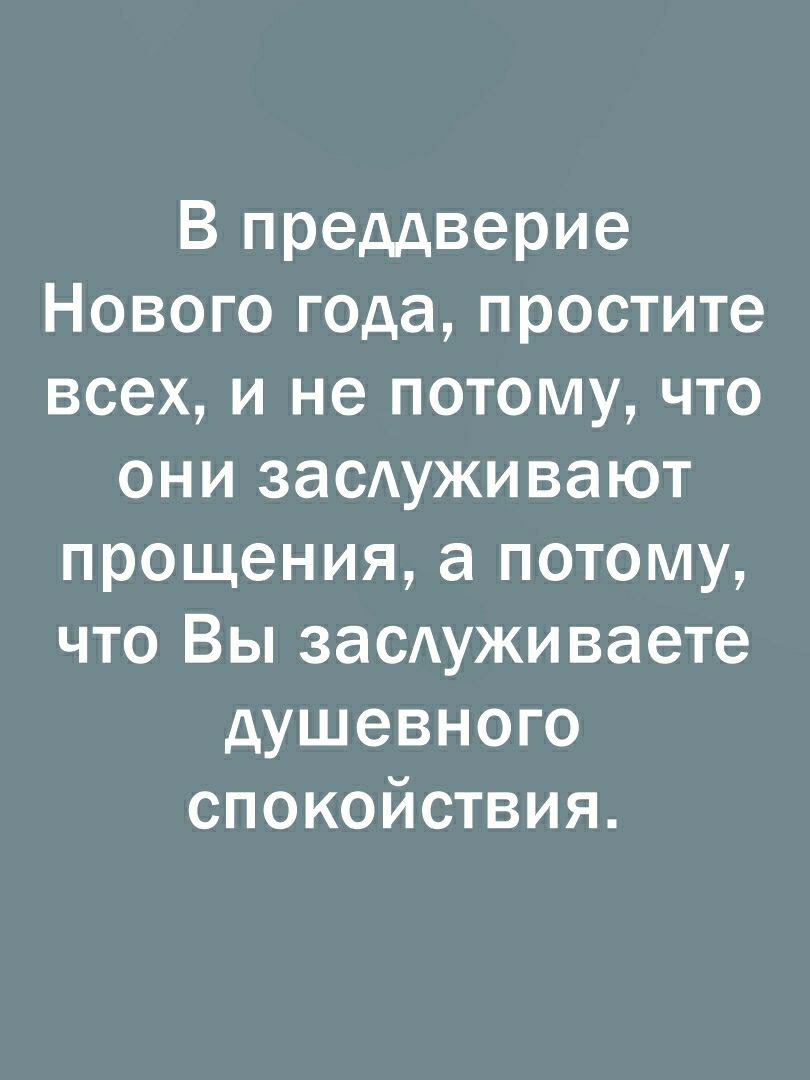 В преддверие Нового года простите всех и не потому что они заСАуживают прощения а потому что Вы заоуживаете душевного спокойствия