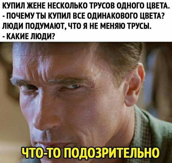 КУПИЛ ЖЕНЕ НЕСКОЛЬКО ТРУСОВ ОДНОГО ЦВЕТА ПОЧЕМУ ТЫ КУПИЛ ВСЕ ОДИНАКОВОГО ЦВЕТА ЛЮДИ ПОДУМАЮТ ЧТО Я НЕ МЕНЯЮ ТРУСЫ КАИЕ людиг