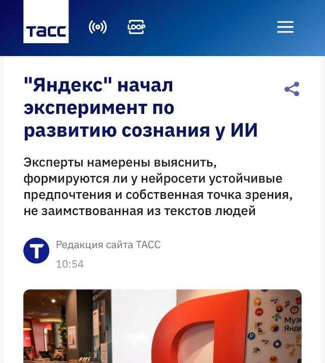 "Яндекс" начал эксперимент по развитию сознания у ИИ. Эксперты намерены выяснить, формируются ли у нейросети устойчивые предпочтения и собственная точка зрения, не заимствованная из текстов людей
