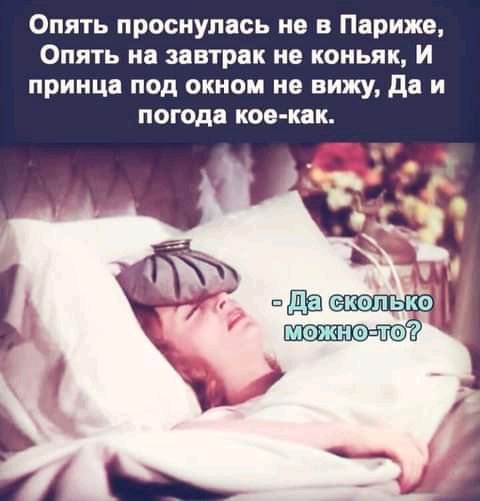 Опять проснулась не в Париже Опять на завтрак ие коньяк И принца под окном не вижу да и погода кое как