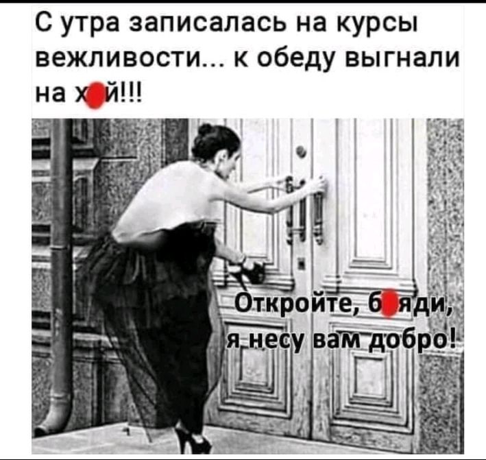 С утра записалась на курсы вежливости к обеду выгнали на х й
