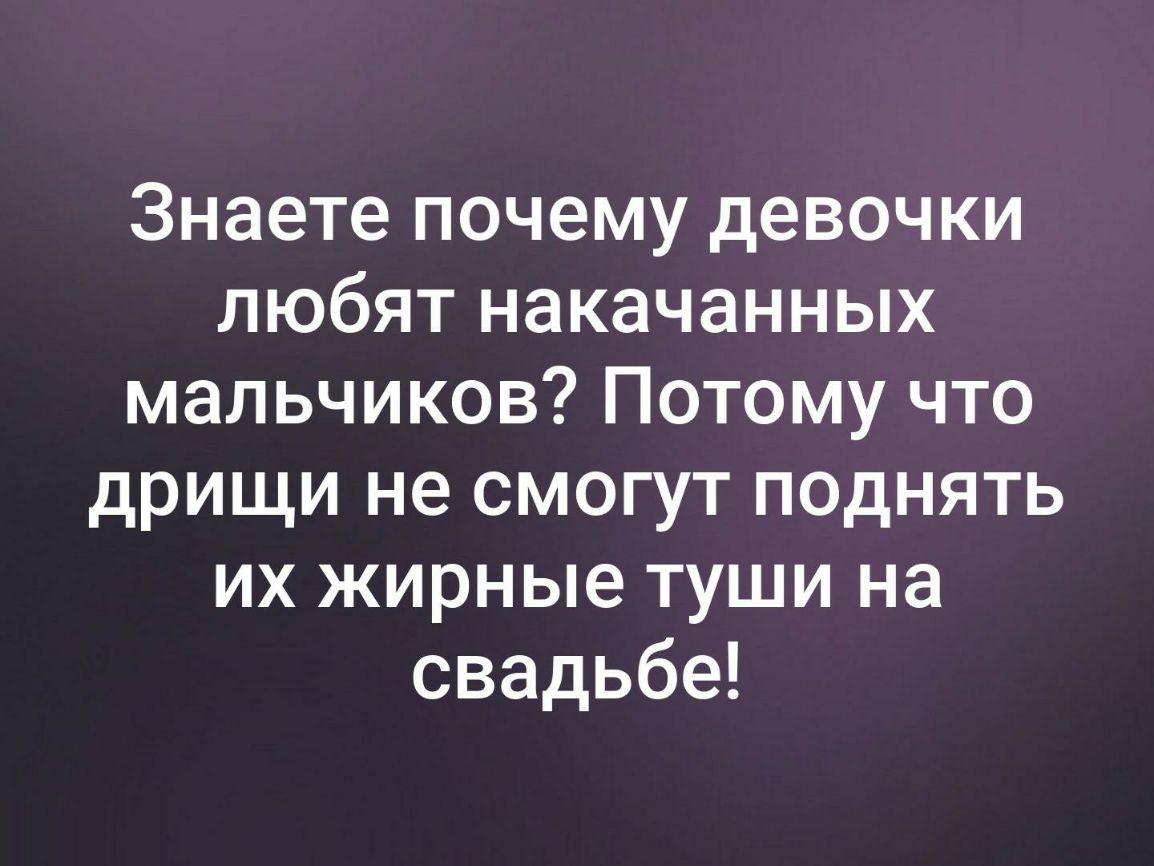 Знаете почему девочки любят накачанных мальчиков Потому что дрищи не смогут поднять их жирные туши на свадьбе