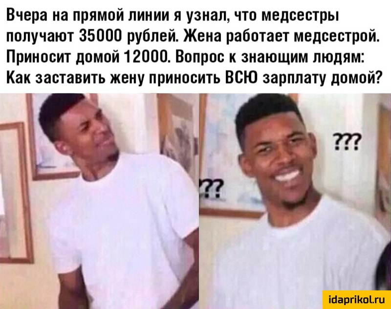 Вчера на прямой линии я узнал что медсестры получают 35000 рублей Жена работает медсестрой Приносит домой 12000 Вопрос к знающим людям Как заставить жену приносить ВСЮ зарплату домой 1дариКоги