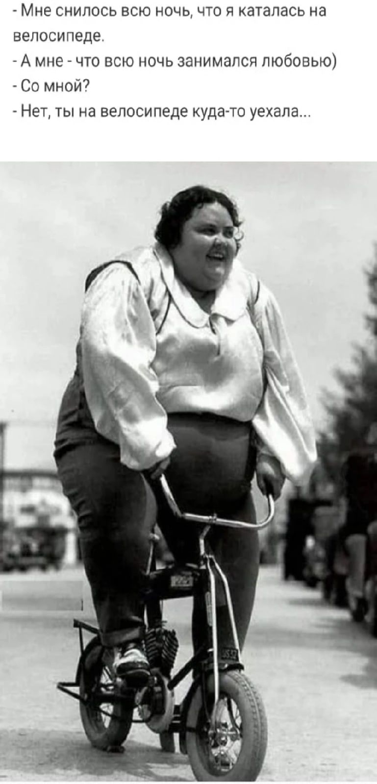 Мне снилось всю ночь что я каталась на велосипеде А мне что всю ночь занимался любовью Со мной7 Нет ты на велосипеде куда то уехала