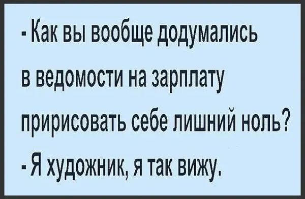 Как вы вообще додумались в ведомости на зарплату пририсовать себе лишний ноль Я художник я так вижу