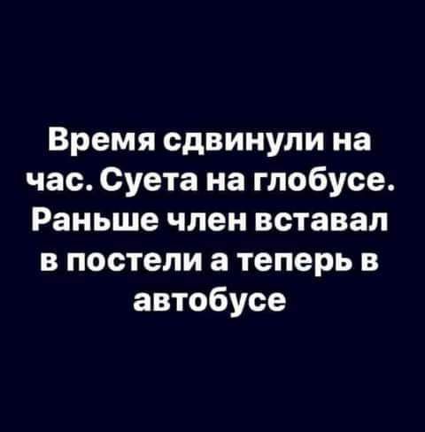 Время сдвинули на час Суета на глобусе Раньше член вставал в постели а теперь в автобусе