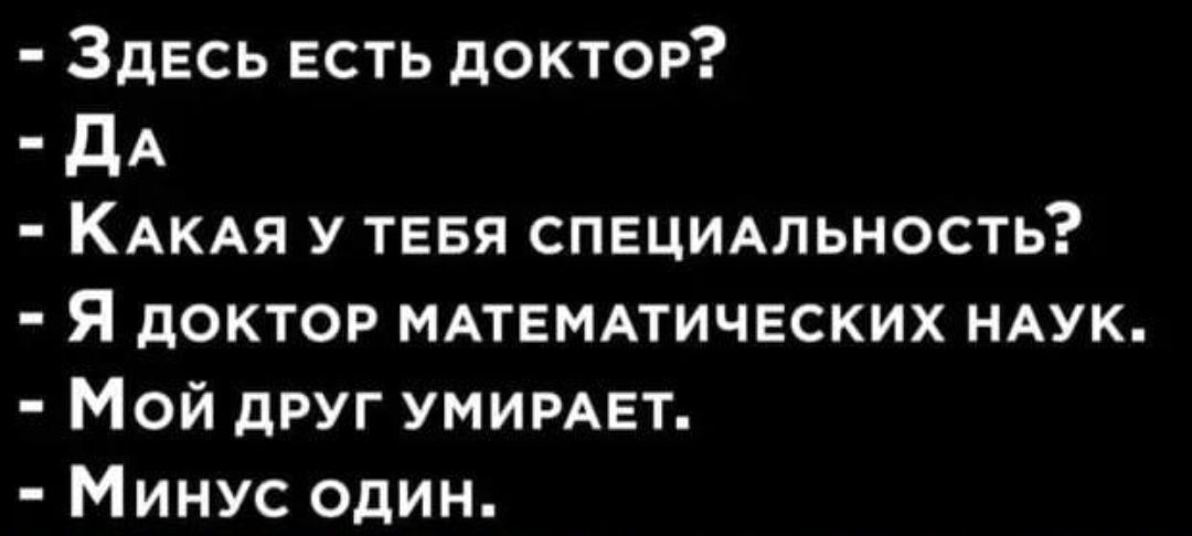 Здесь есть доктор ДА КАКАЯ у ТЕБЯ спвцидпьность Я доктор мпвмпических ндук Мой друг УМИРАЕТ Минус один