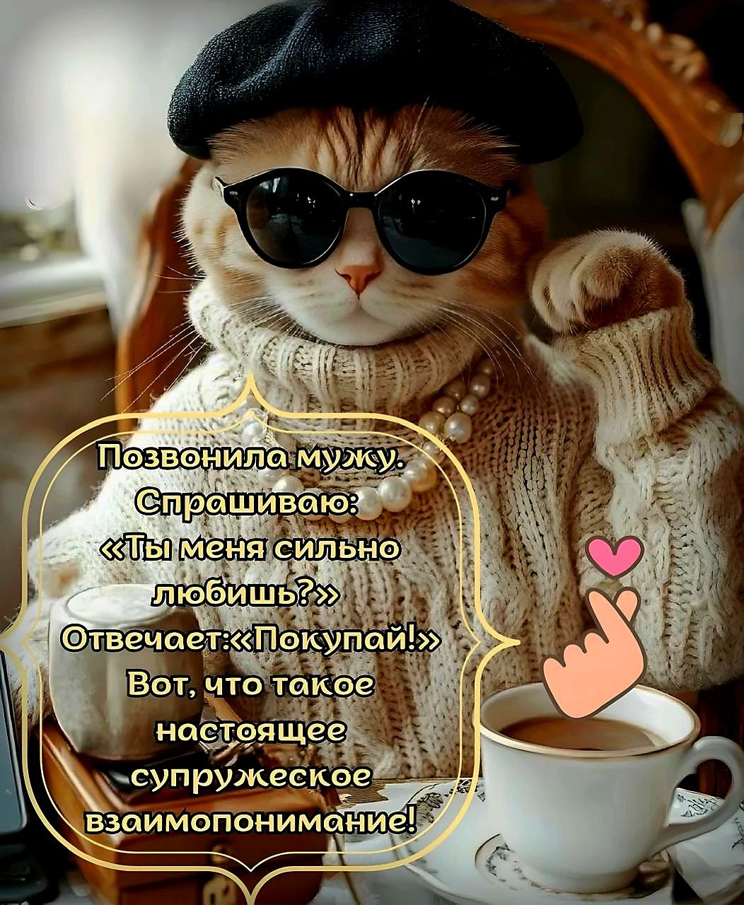 Позвонила мужу. Спрашиваю: «Ты меня сильно любишь?» Отвечает: «Покупай!» Вот, что такое настоящее супружеское взаимопонимание!