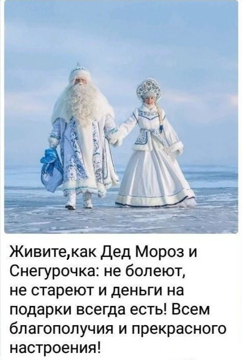 Живитекак Дед Мороз и Снегурочка не болеют не стареют и деньги на подарки всегда есть Всем благополучия и прекрасного настроения