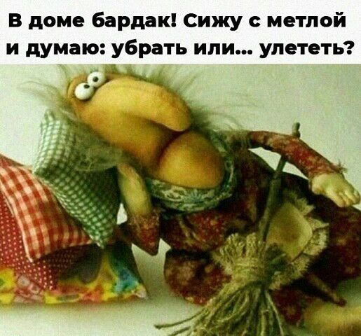 В доме бардак Сижу метлой и думаю убрать или улететь