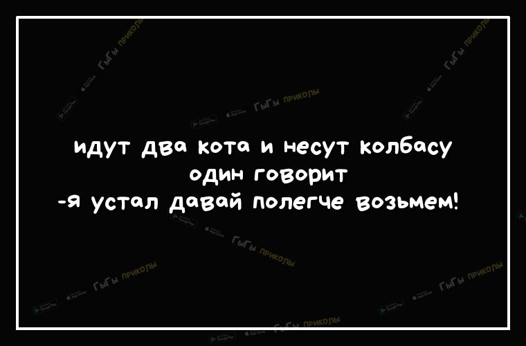 идут д8 кот и несут колбасу один говорит УСТЛ девой полегче возьмем