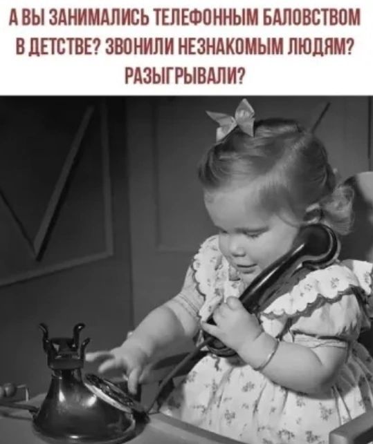 А ВЫ ЗАНИМАЛИСЬ ТЕЛЕФОННЫМ БАЛОВСТВОМ В ДЕТСТВЕ? ЗВОНИЛИ НЕЗНАКОМЫМ ЛЮДЯМ? РАЗЫГРЫВАЛИ?