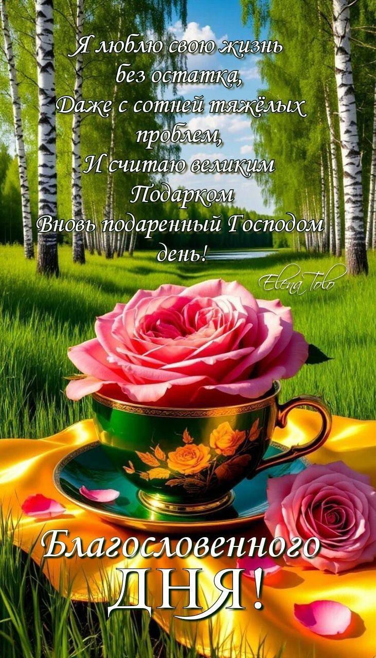 Я люблю свою жизнь без остатка, Даже с сотней тяжёлых проблем, И считаю великим Подарком Вновь подаренный Господом день! Благословенного ДНЯ!