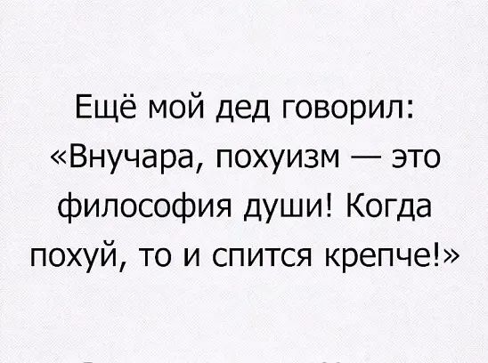 Ещё мой дед говорил Внучара похуизм это философия души Когда похуй то и спится крепче
